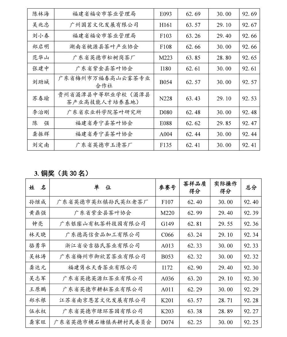 本次大賽共有來自全國12個紅茶主產(chǎn)省市的133支參賽隊、230余位選手參賽?;顒庸苍O(shè)10個金獎、20個銀獎、30個銅獎,福建雋永天香茶業(yè)有限公司的龔達元、劉旭光等3名代表參賽,斬獲2個銅獎及優(yōu)秀組織獎的佳績。